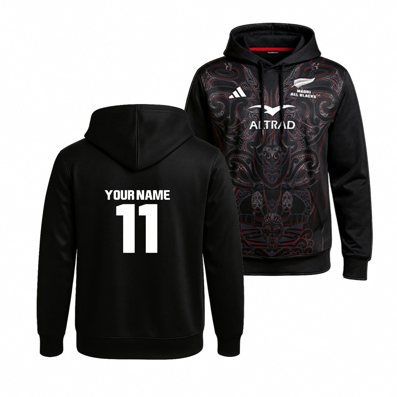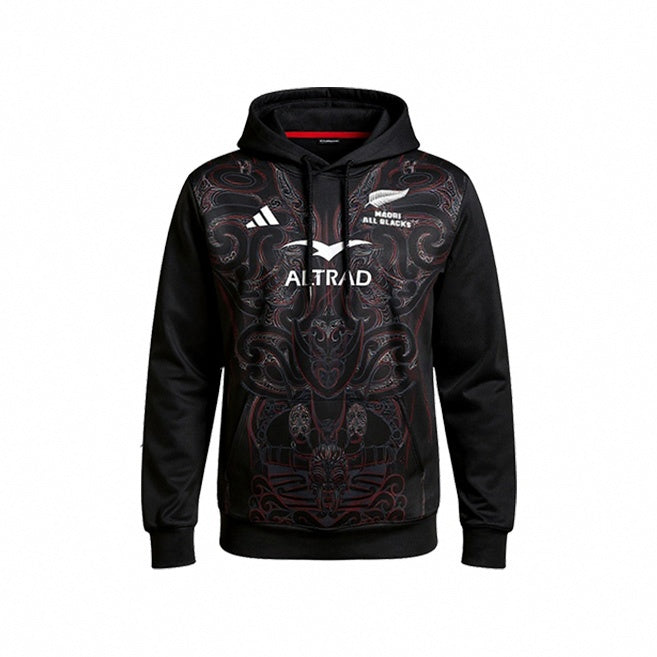 🏆 Team pride – Discreet Māori All Blacks branding complements the hoodie design.